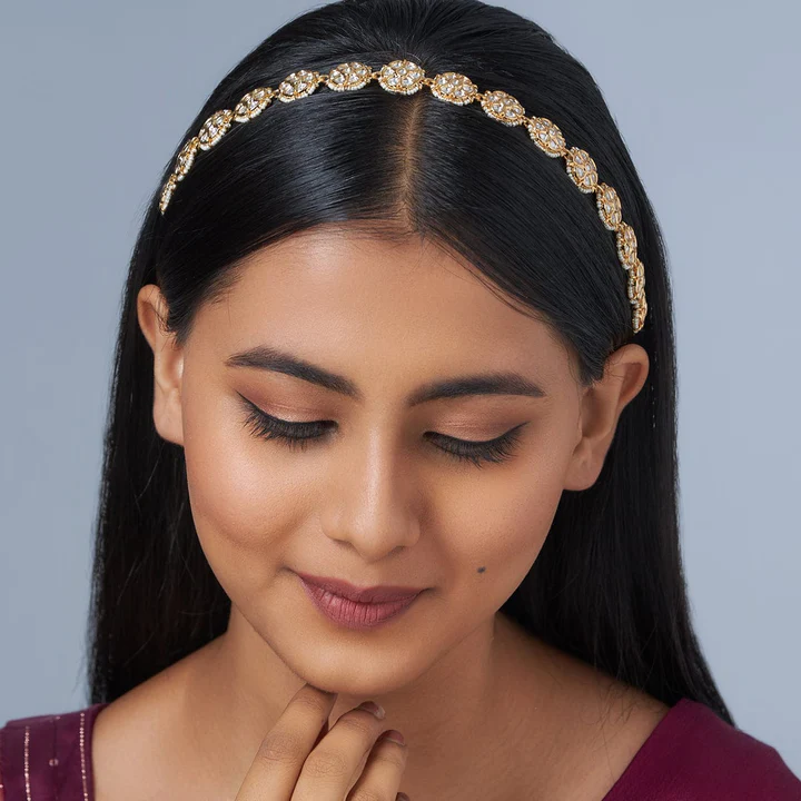 Now and then, everyone deserves to look as timeless as they want. This exclusively designed kundan tikka helps you create the same timeless look. It is adorned with kundan stones and beads that not only add a hint of strength and elegance to it but also create a gleamy appearance that demands attention.